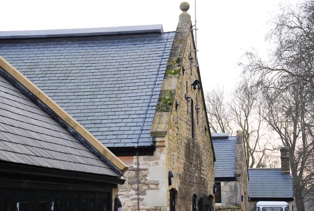 Four long, low outbuildings dating from the mid-nineteenth century were fitted with more than 1,800 square metres of SSQ’s Del Carmen natural slate – around 40,000 individual slates in total.
