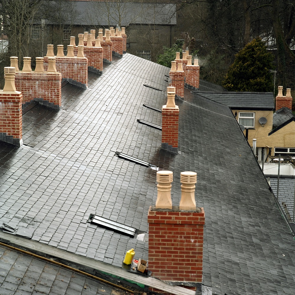 Fortunately, as Keith Saunders, Technical Officer at Caerphilly County Council’s Environment Directorate, explains: “SSQ were prepared to offer the watertightness guarantee we required using Riverstone roofing slate [in extra large sizes]. Since Riverstone roofing slates were used at Christ College, Brecon, they were readily accepted by both Cadw and the HLF for renovation of The Terrace’s roofs.”